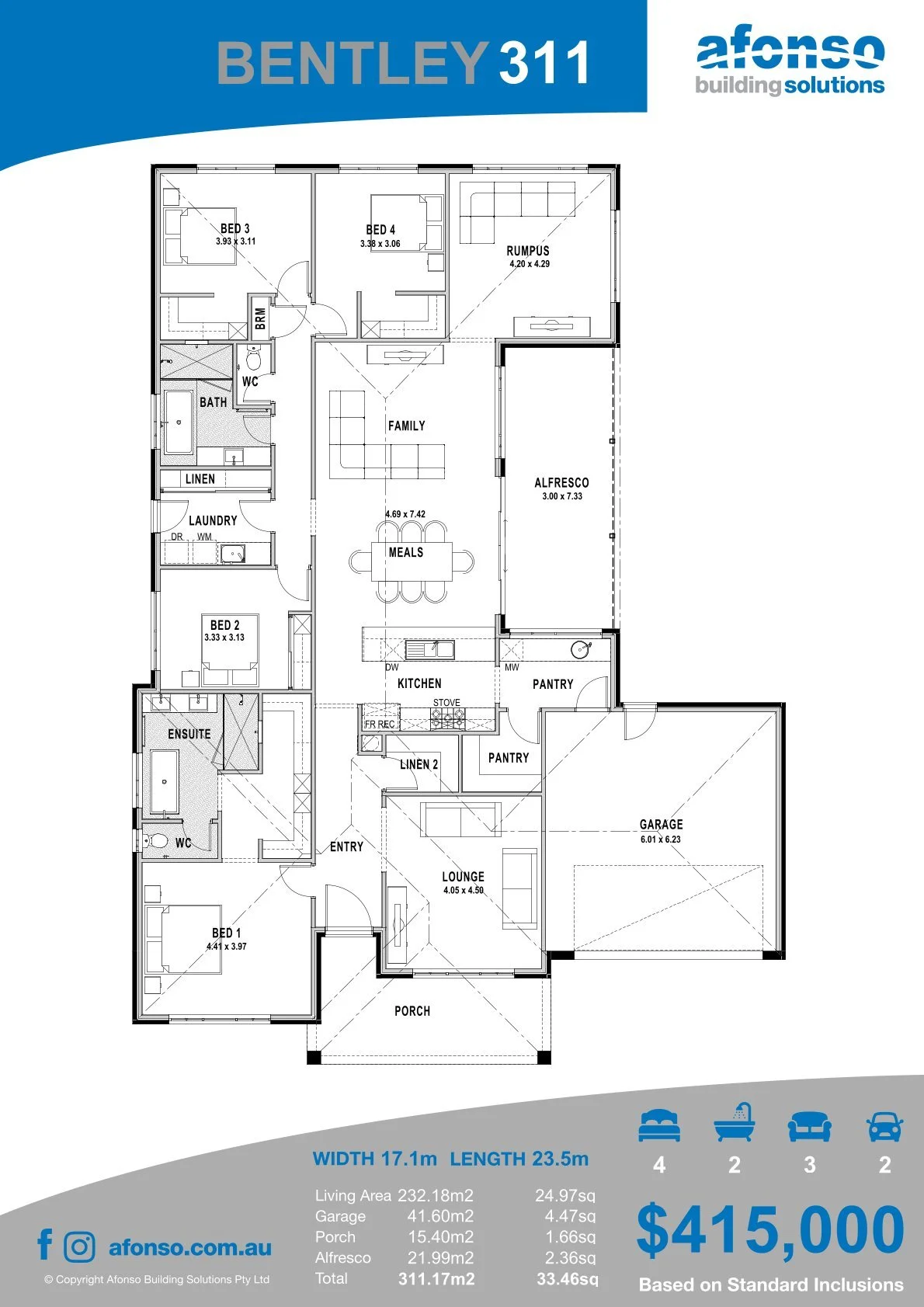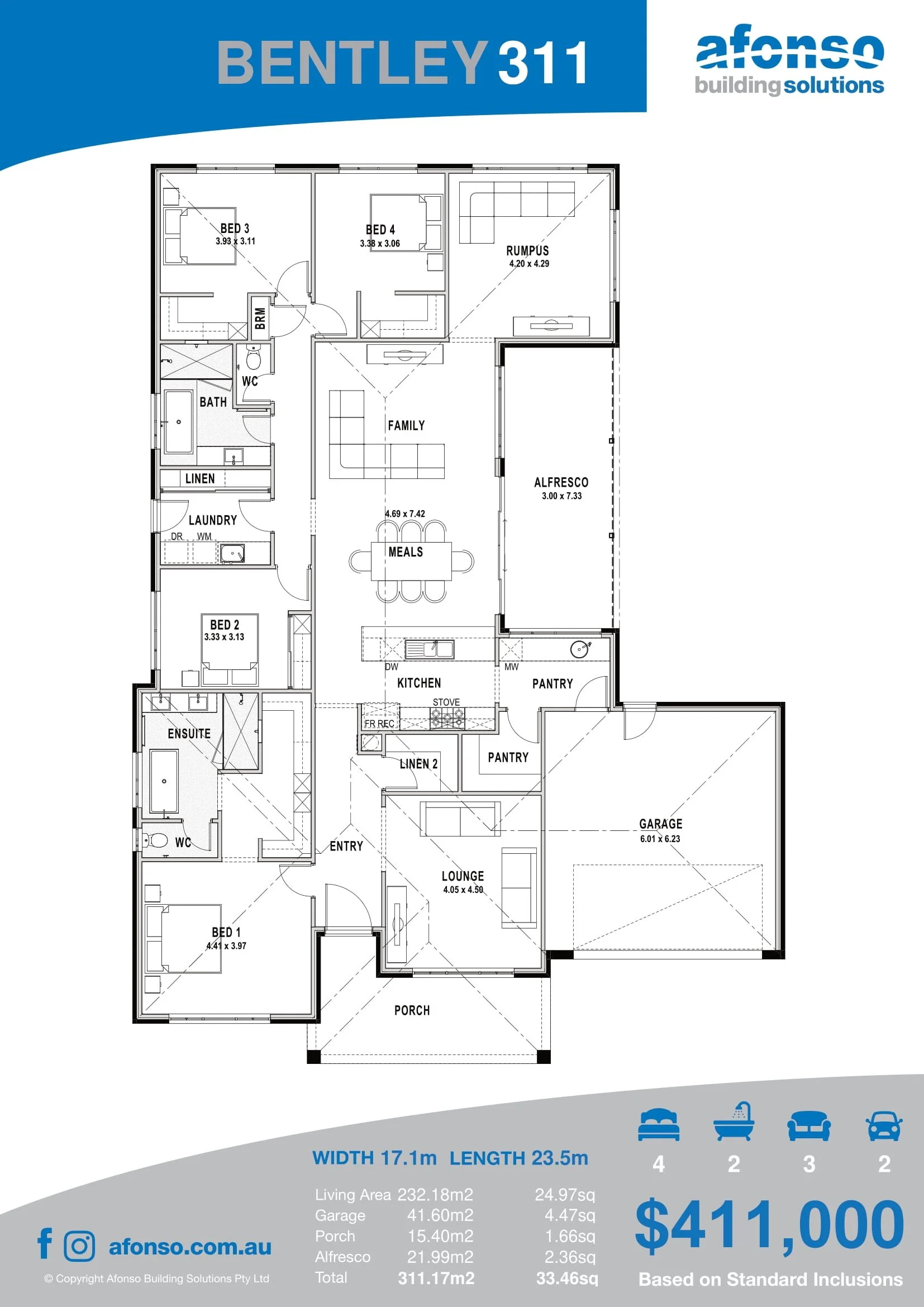The Bentley 311 is a spacious family home providing a great mix of entertaining and family living, with 4 generous sized bedrooms and 3 living areas.
