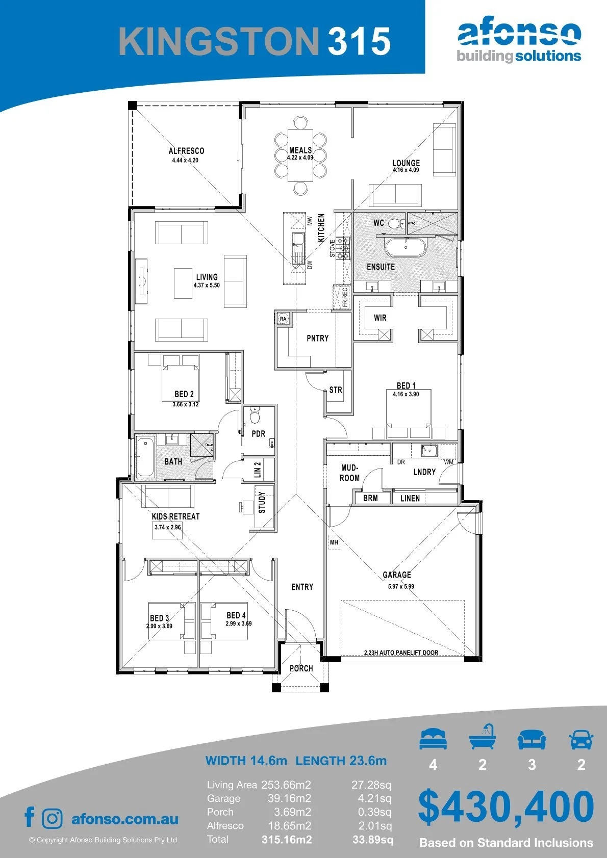 The Kingston 315 combines thoughtful design and flexibility, making it the ideal home for modern family living.