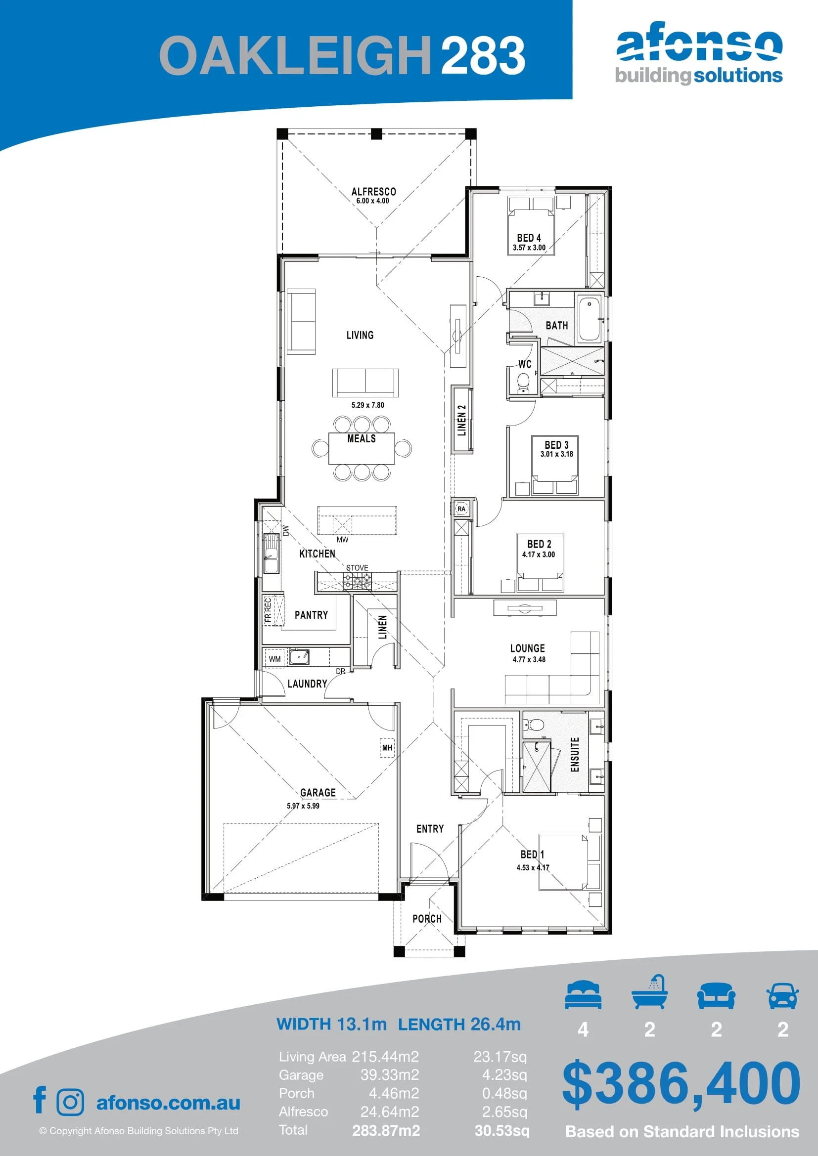 The Oakleigh 283 in Silverwoods Estate showcases Afonso Building Solutions Standard Inclusions, with the home built almost entirely from our standard range.