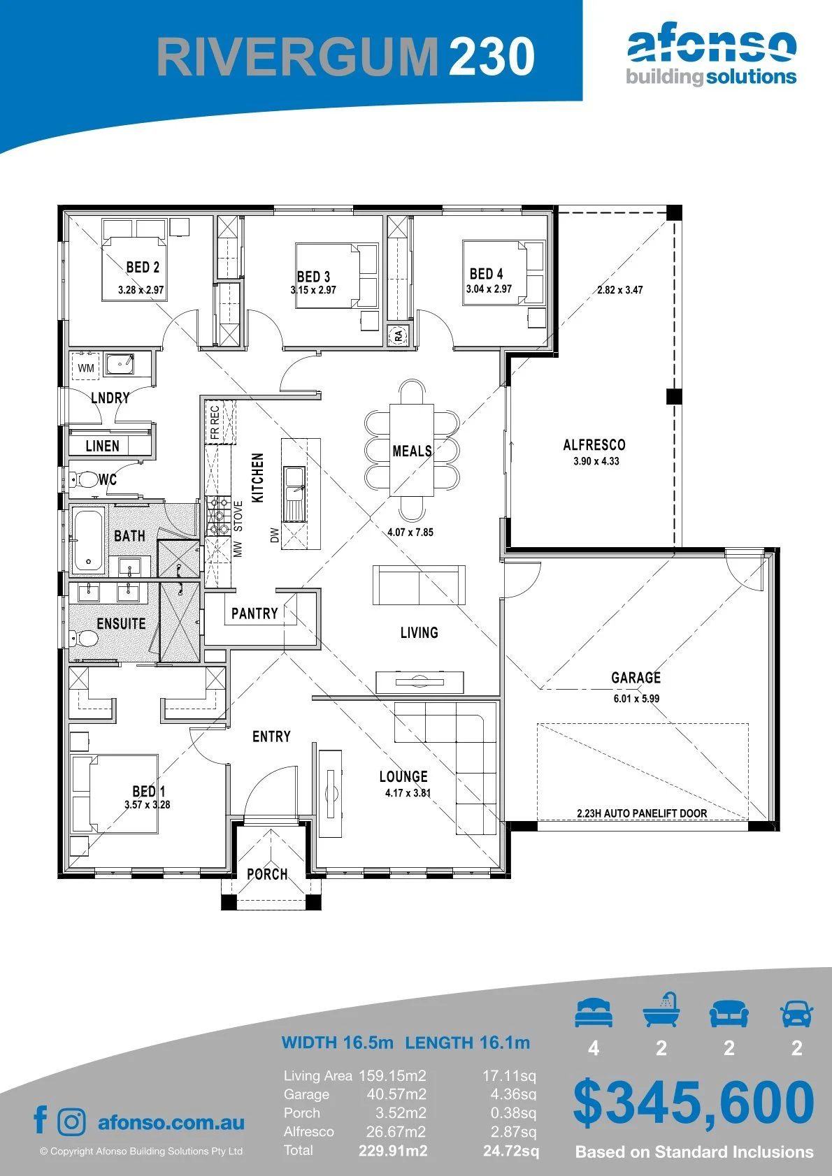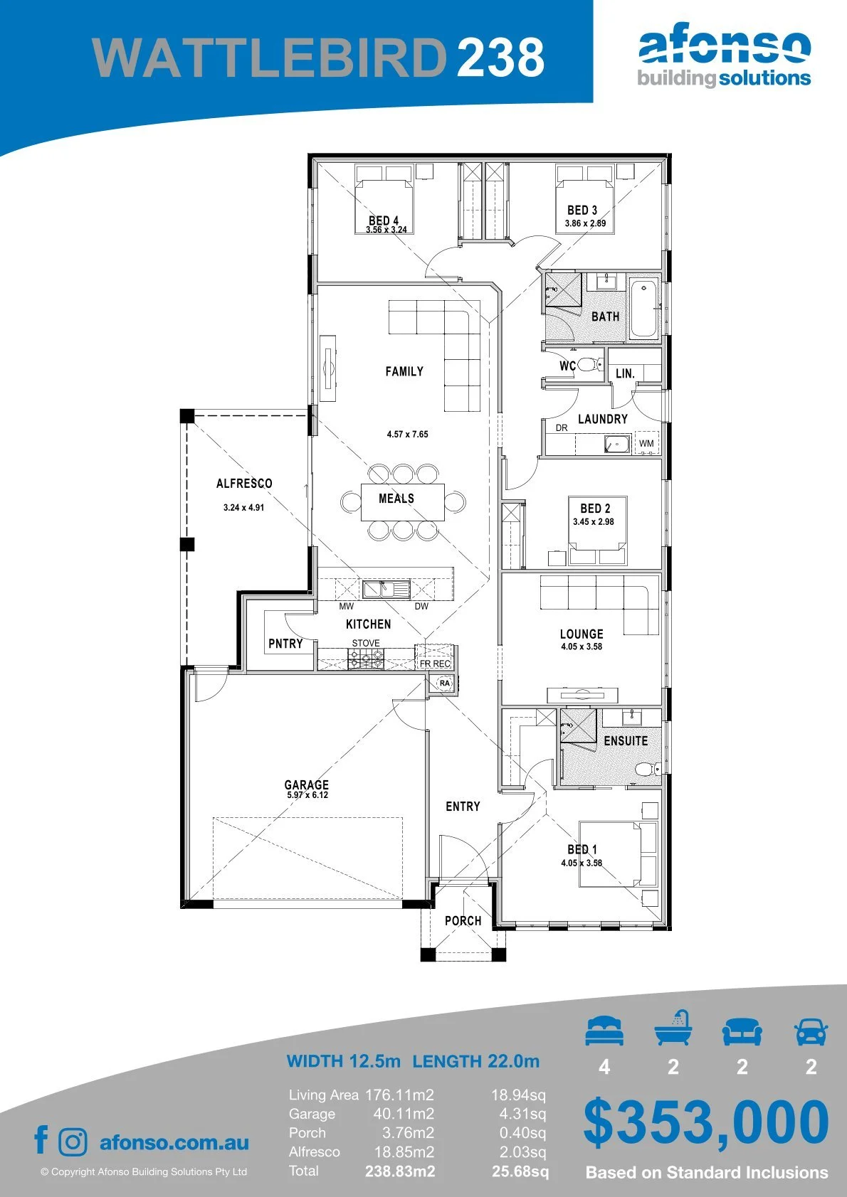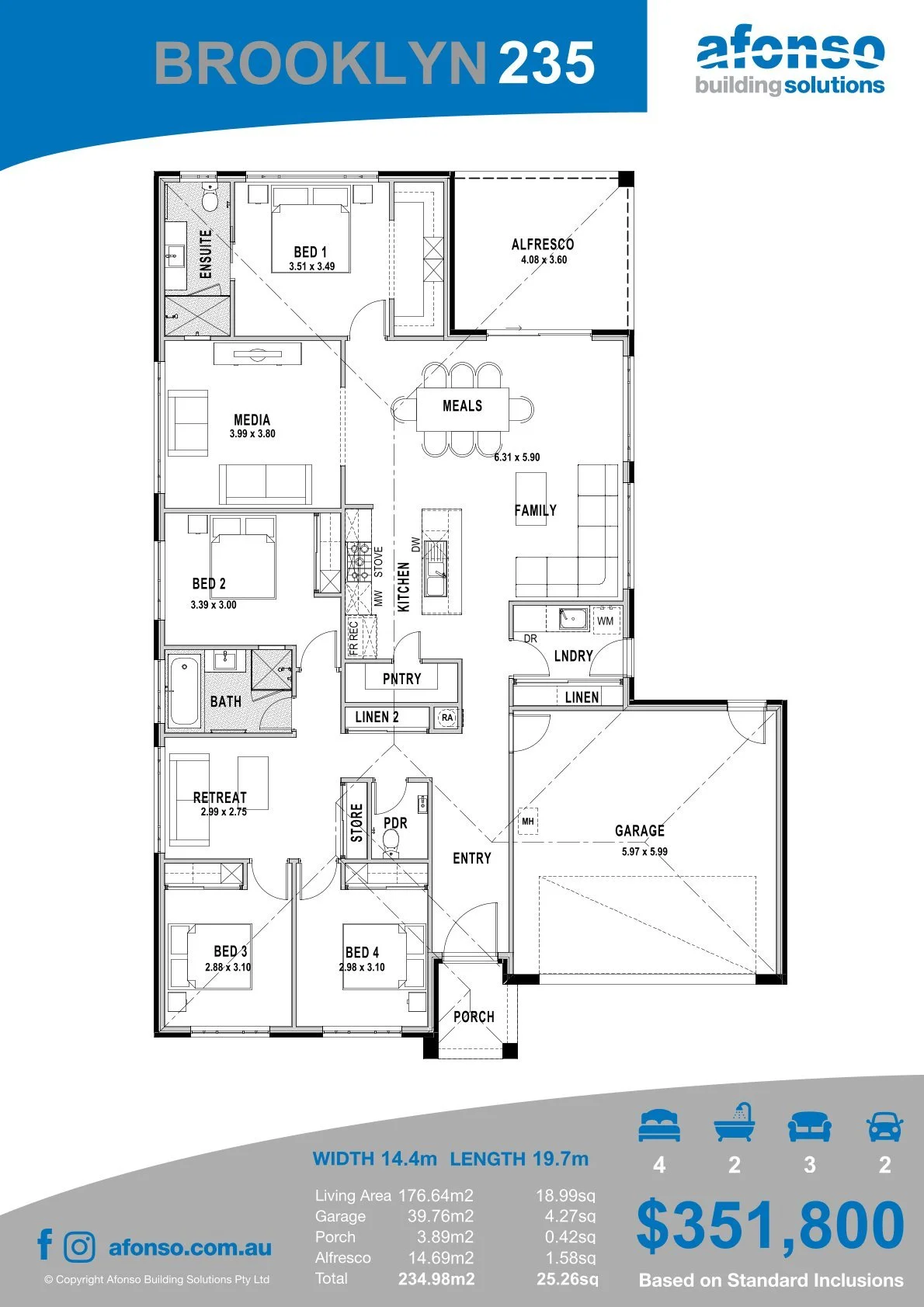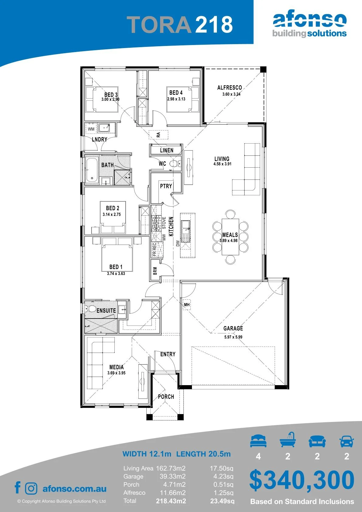 A mid sized range of designs up to 240m2 total, encompassing 3 bedroom 1 living designs up to 4 bedroom 2 living.