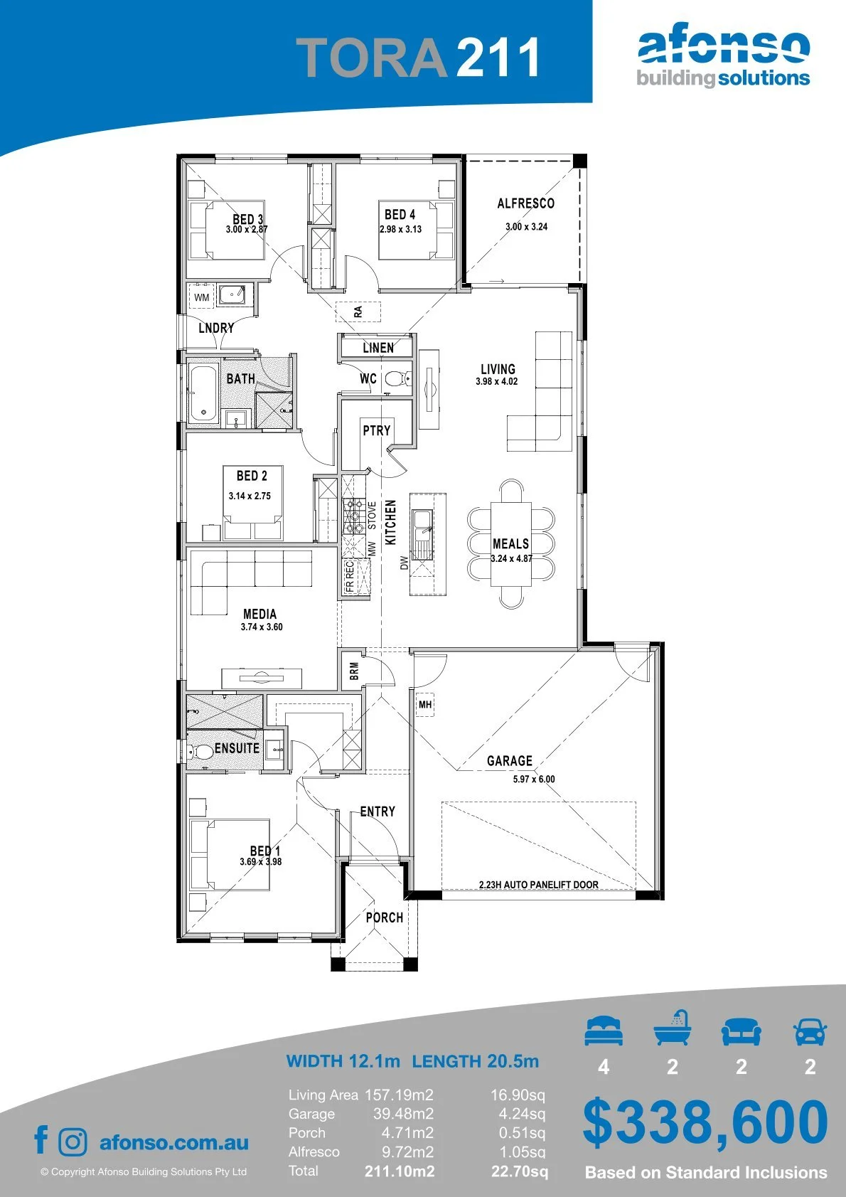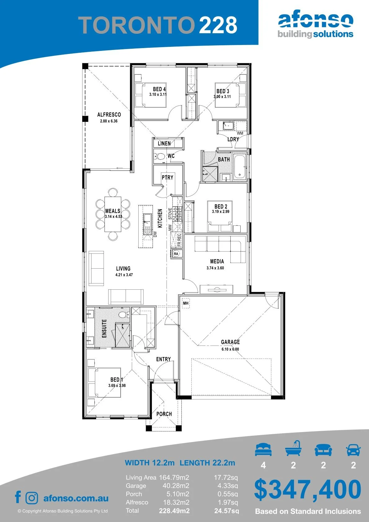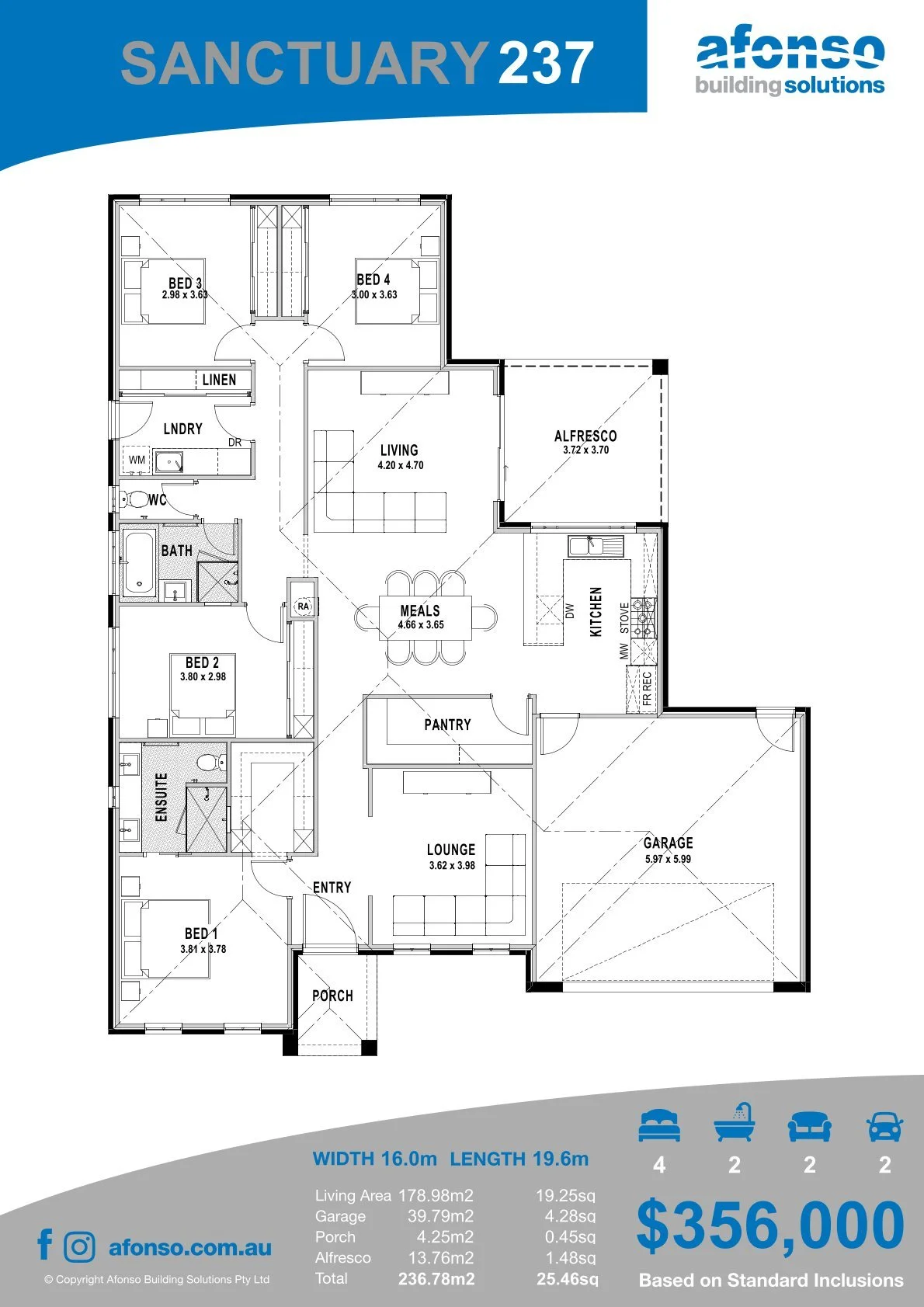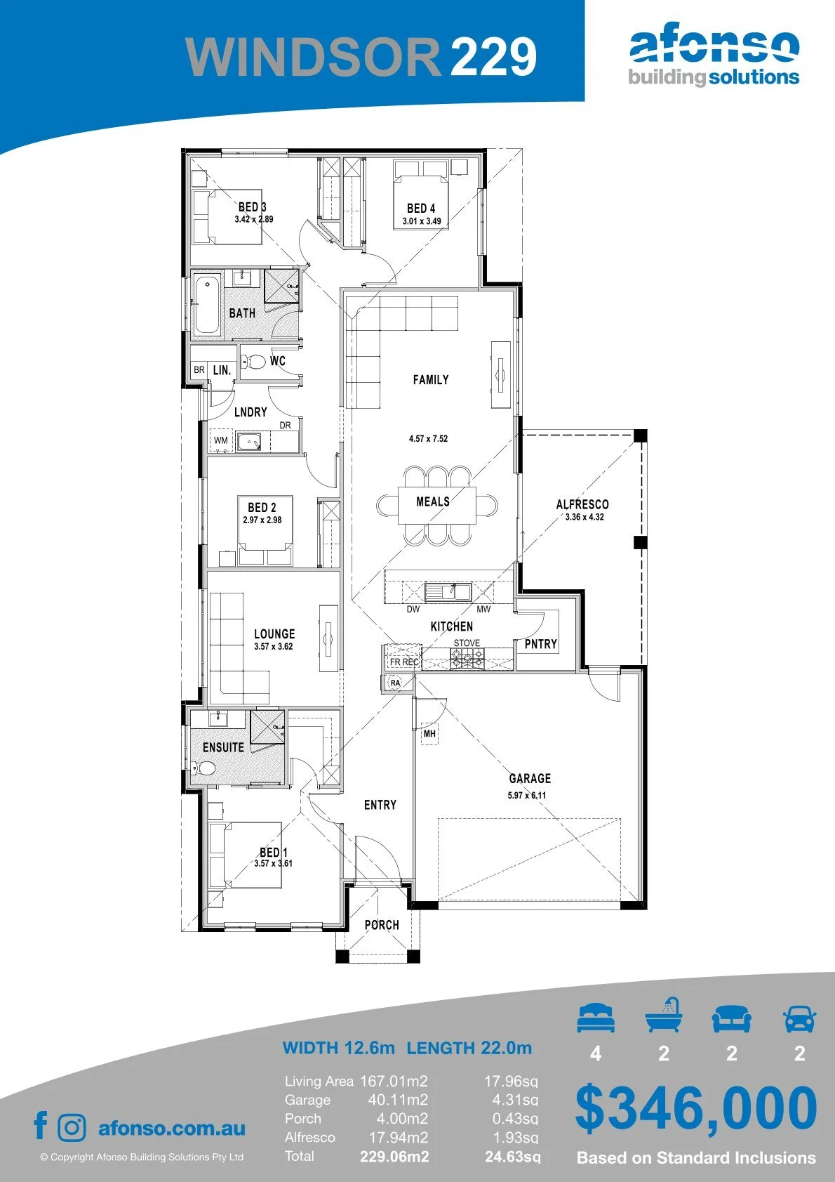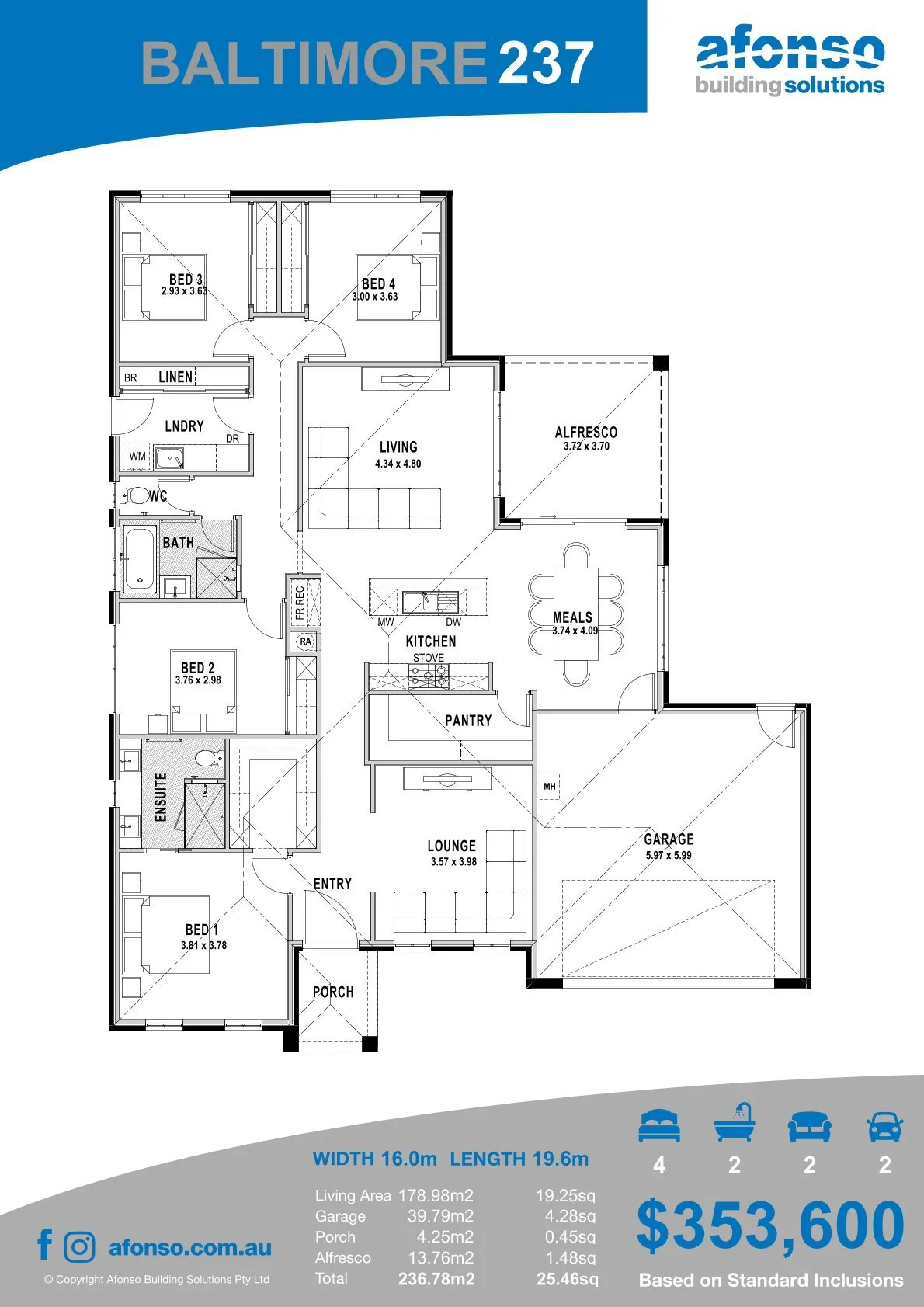 A mid sized range of designs up to 240m2 total, encompassing 3 bedroom 1 living designs up to 4 bedroom 2 living.