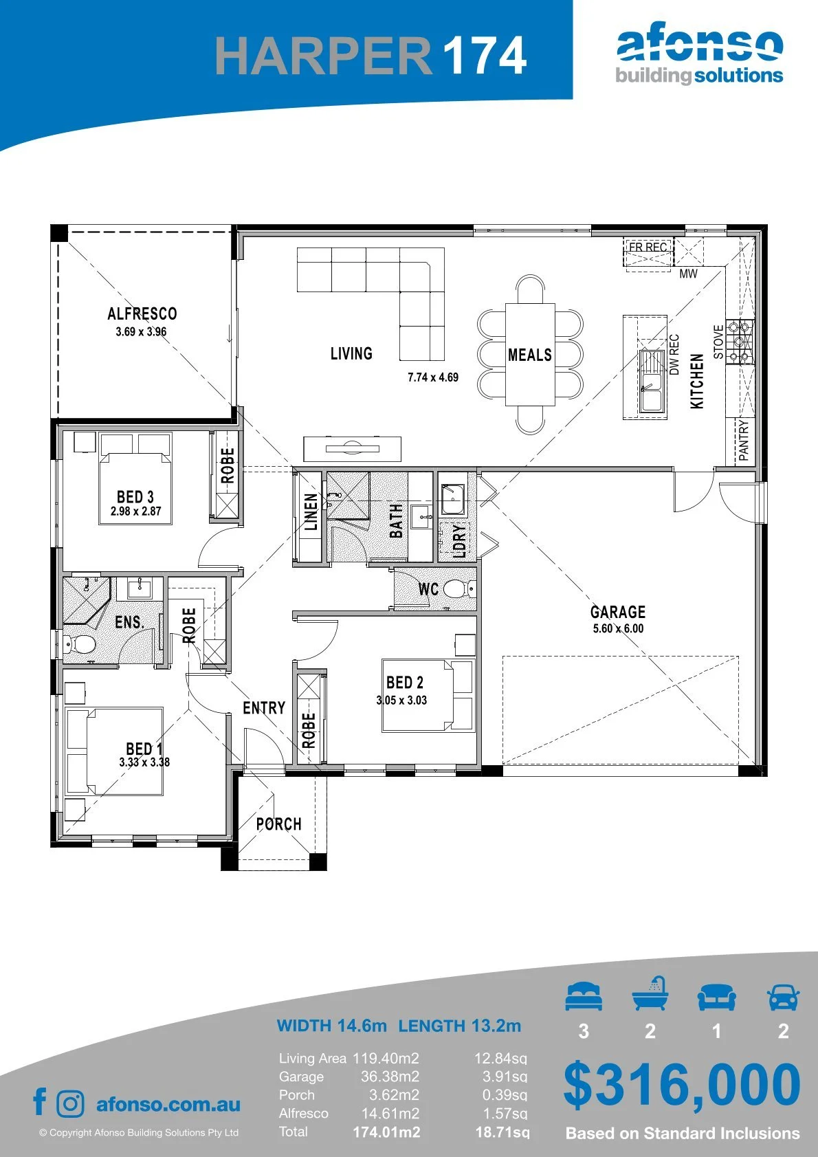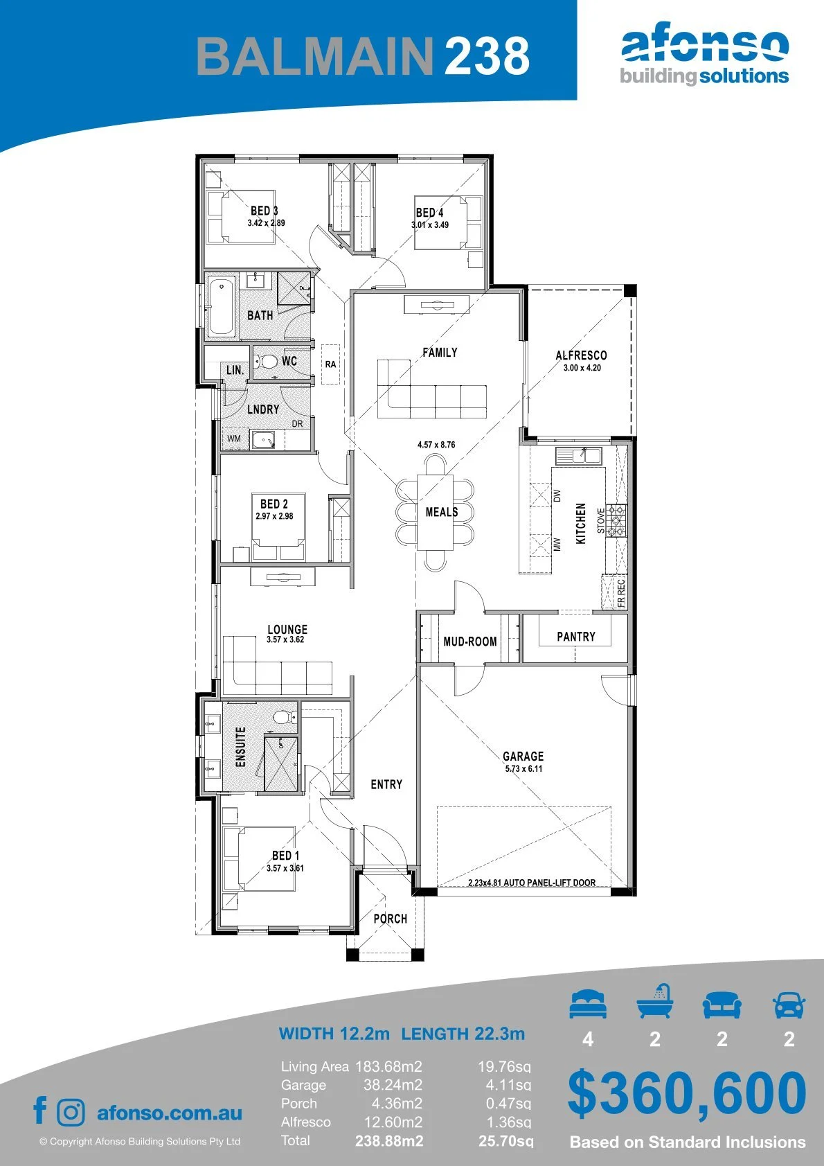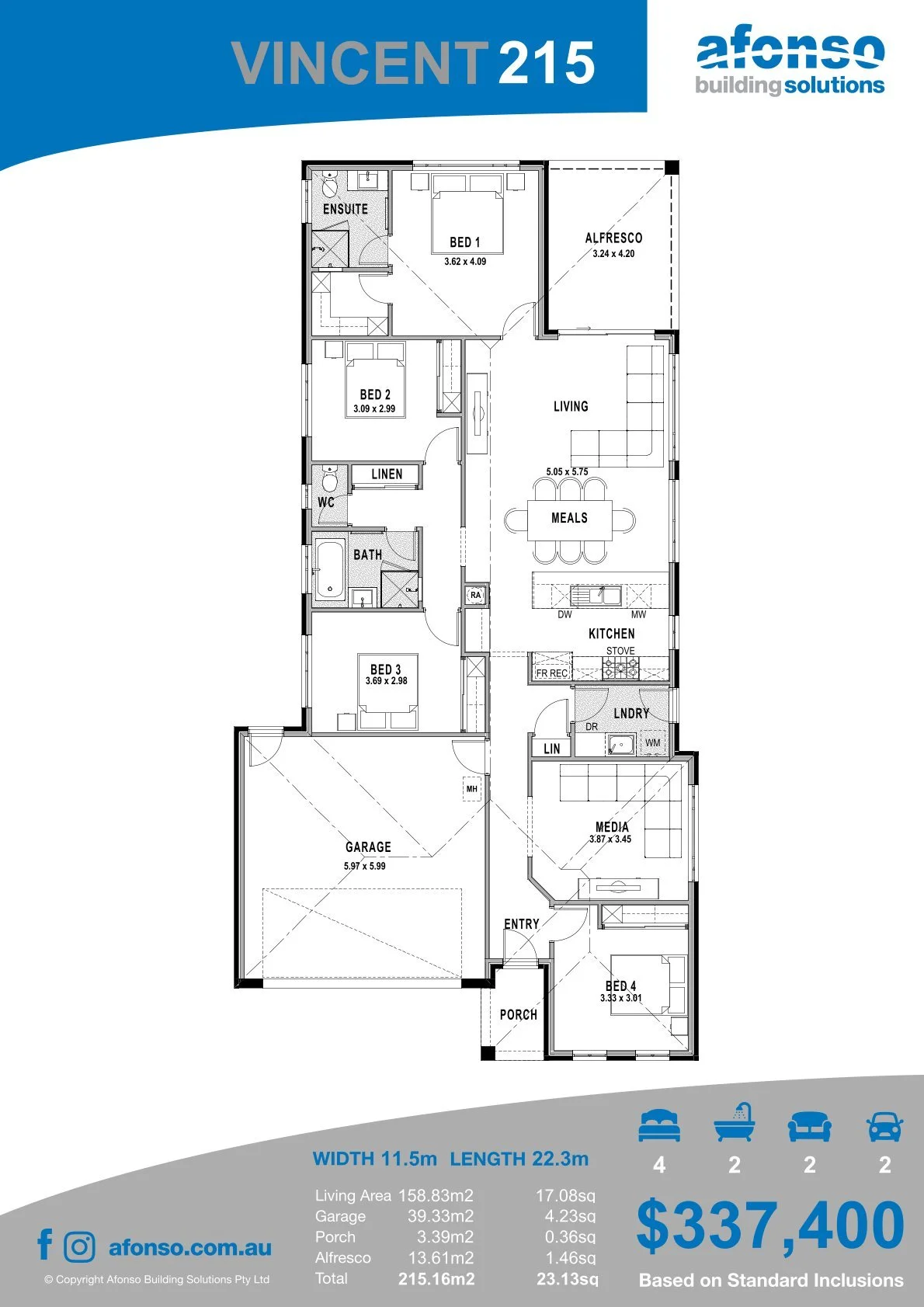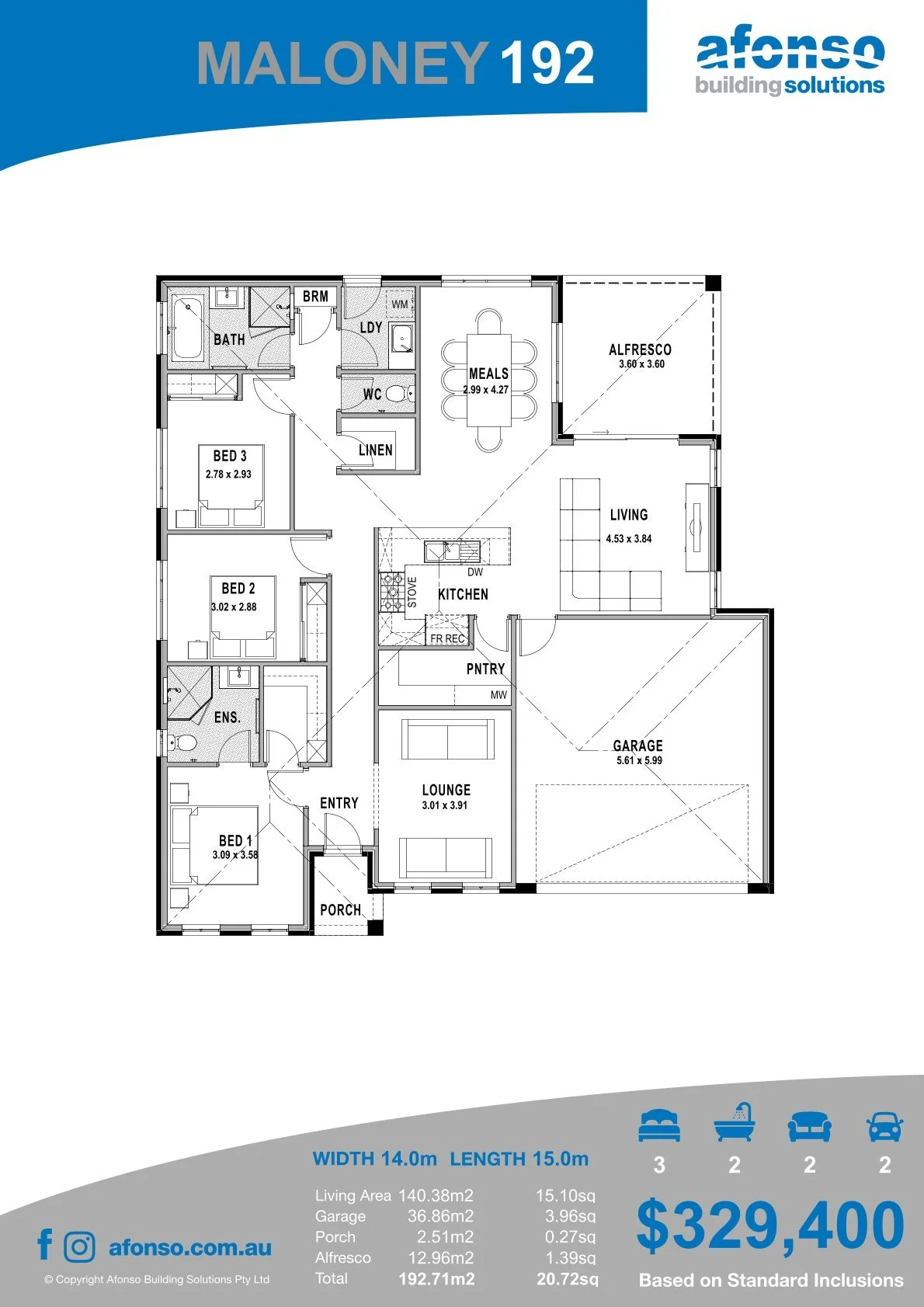A mid sized range of designs up to 240m2 total, encompassing 3 bedroom 1 living designs up to 4 bedroom 2 living.